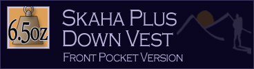 Skaha Plus Vest is a hooded, ultralight, fully baffled zip