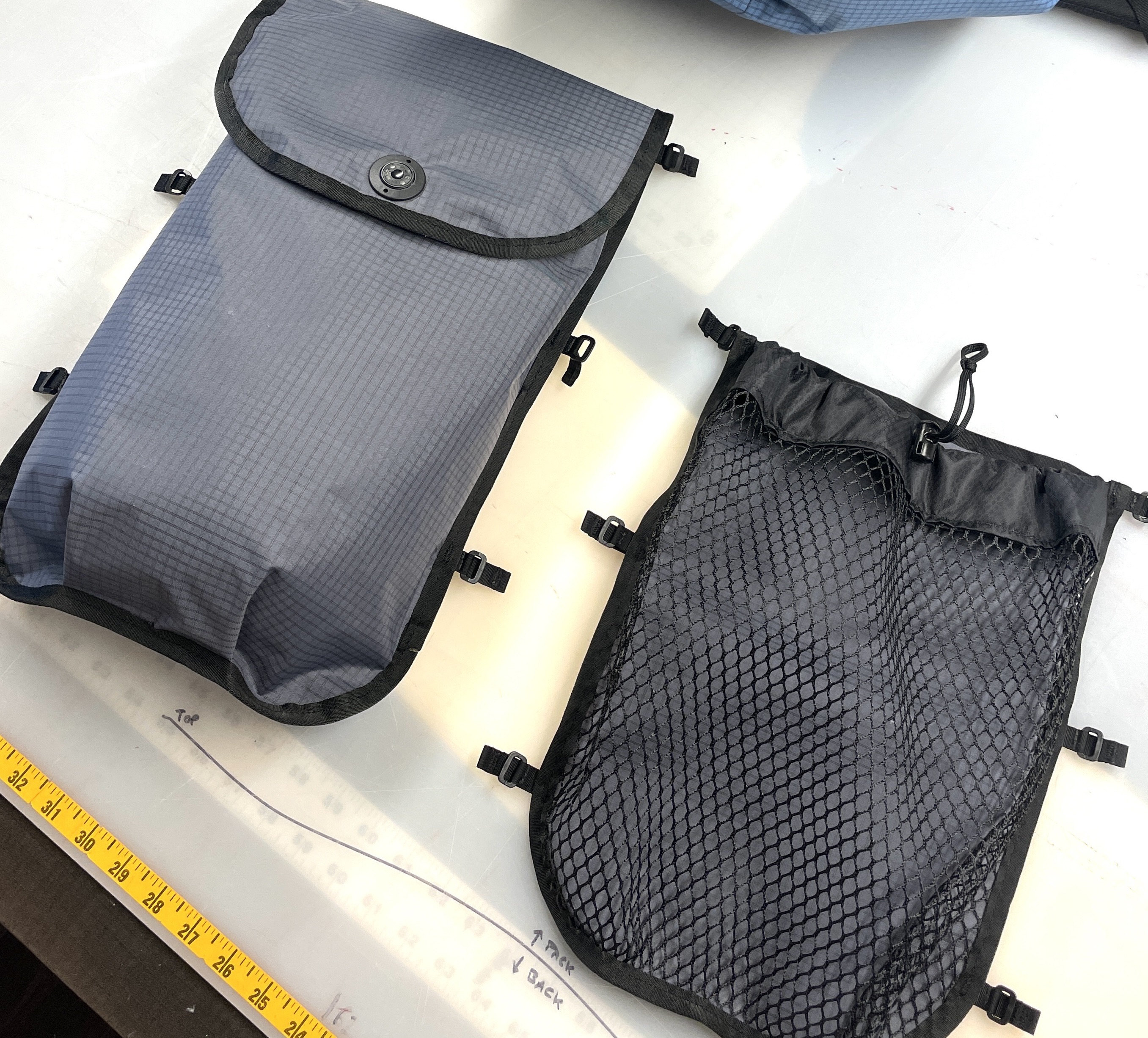 I configure this pack with mesh front pocket, one bottle holder (water is plenty full in the Sierra), no hipbelt pocket (that's what shorts pockets are for) and one shoulder strap pocket for phone.